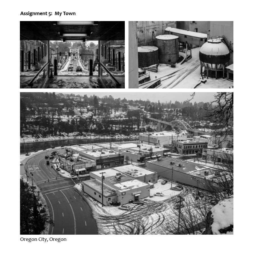 The shot of the highway curling around to the bridge is one of my favorite shots of the year and the assignment helped me to find this composition, which I had never noticed previously. The shot from inside the Oregon City Elevator tunnel looking out to the Oregon City Bridge shows the great symmetry of these two iconic downtown landmarks, and the shot of the tanks covered in snow emphasizes the great shapes of an abandoned factory.